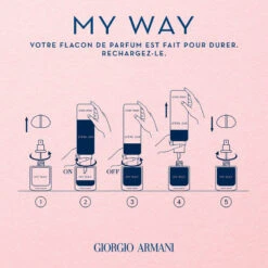 My Way, l’eau de parfum rechargeable pour femme de Giorgio Armani, est une vĂ©ritable invitation Ă s’ouvrir Ă de nouvelles rencontres, vivre des expĂ©riences uniques et Ă©largir ses horizons.